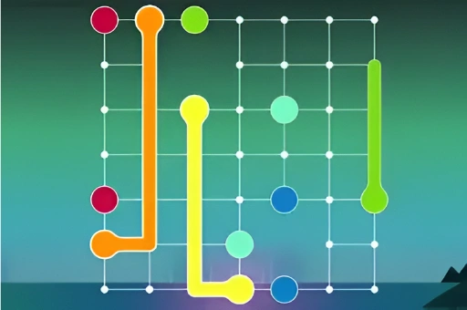In Link Lines, players face a grid of squares with various sizes and colors, tasked with connecting matching-colored dots without intersecting lines to complete challenging levels.